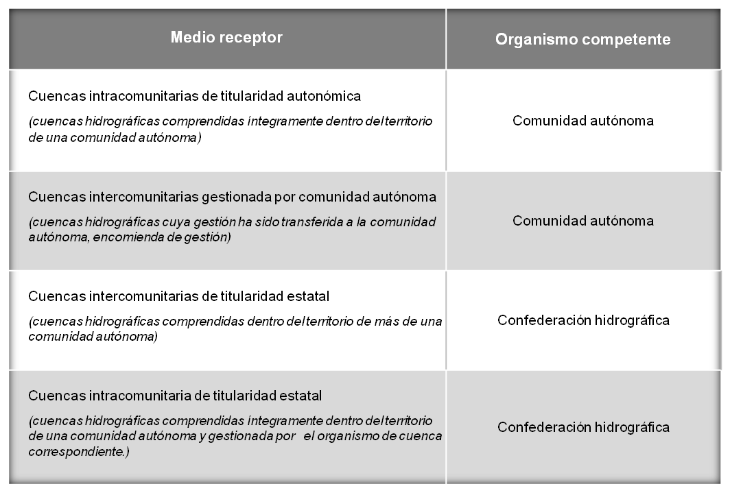 En el caso de las emisiones al agua realizadas a demarcaciones hidrográficas con cuencas intercomunitarias, como norma general la autoridad ambiental competente es el Organismo de Cuenca correspondiente, a excepción de las que son gestionadas por la comunidad autónoma.